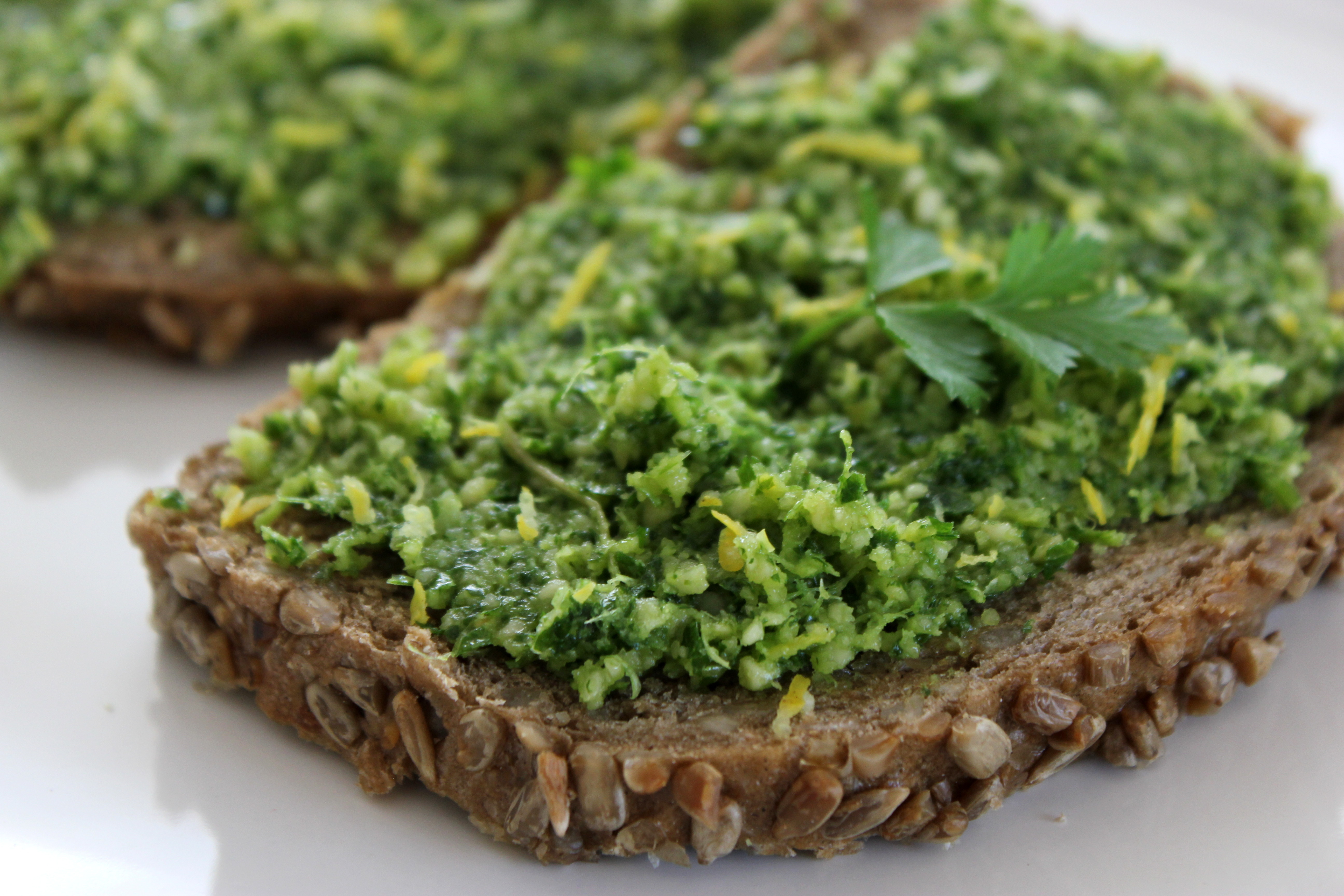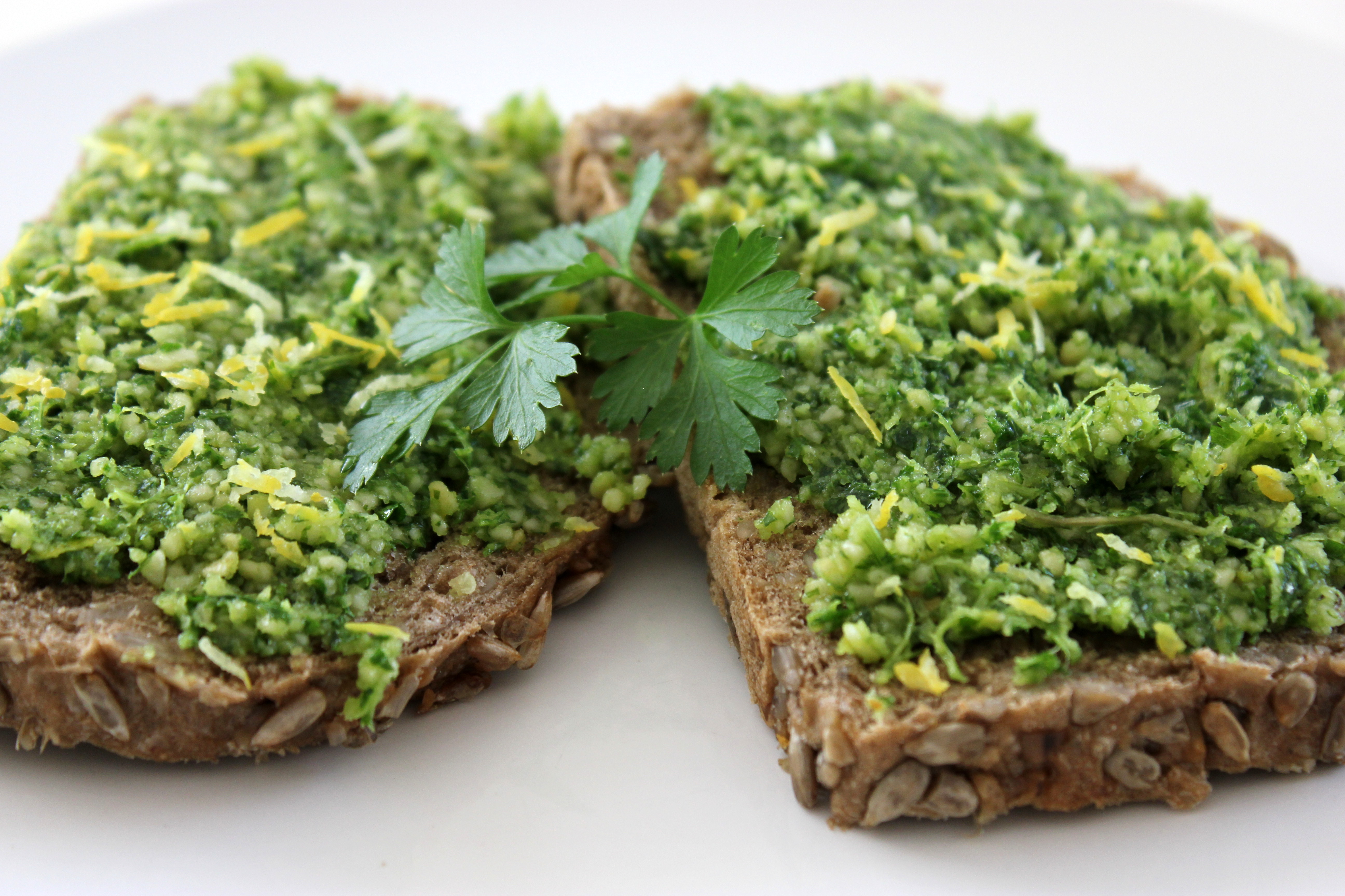 Już dodatek jednej łyżki stołowej natki pietruszki do naszego posiłku pokrywa dzienne zapotrzebowanie na witaminę C w organizmie. A witaminy tej zawiera w sobie więcej niż np. cytryna, którą często stosujemy aby wzmocnić naszą odporność. Pamiętajmy o tym i jeszcze przed nastaniem chłodów i jesiennych pluch wzmocnijmy nasz organizm dodając pietruszkę do zup, surówek, sałatek, kanapek i dań mięsnych. Warto również od czasu do czasu potraktować ją jako główny składnik dania i spożywać na surowo (w trakcie gotowania/podgrzewania traci witaminy) w postaci odżywczych koktajli lub proponowanej przeze mnie poniżej pasty na grzanki, która jest tylko jednym z wielu ciekawych kulinarnych zastosowań dla tej skromnej, taniej i zdrowej pietruchy.