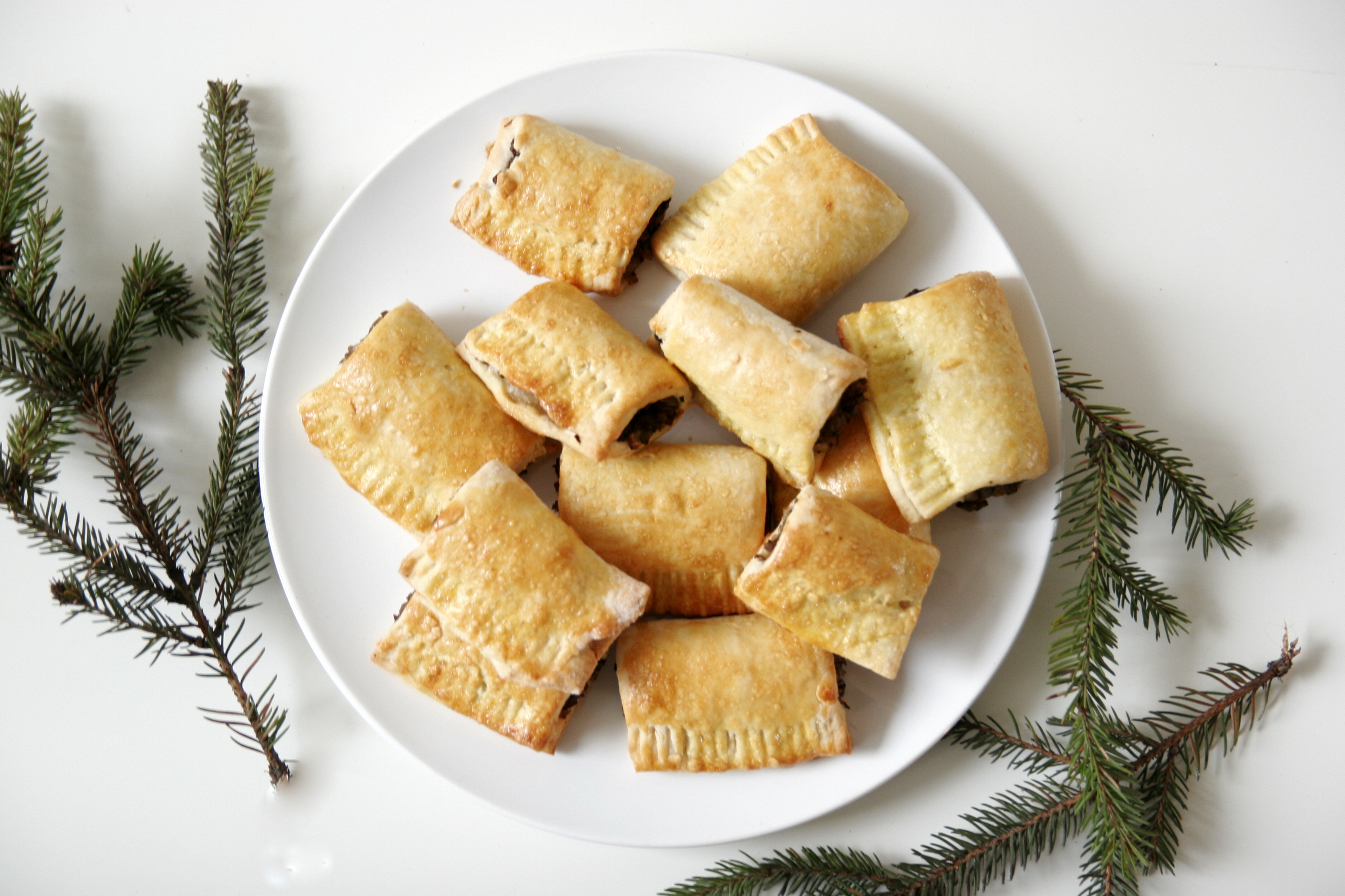 U mnie w domu jest wigilijna tradycja jedzenia barszczu czerwonego, a wiadomo, że jak aromatyczny barszczyk to i pasztecik. Z tego co pamiętam zdarzały się czasami odstępstwa od tej reguły i zamiast barszczu pojawiała się na stole zupa rybna lub pieczarkowa, nie pamiętam jednak Wigilii bez kruchych drożdżowych pasztecików nadzianych pieczarkami i cebulką. To element niezastąpiony i jeden ze świątecznych pewniaków. Wszyscy je lubią (szczególnie na ciepło) i znikają prawie tak szybko jak pierogi z kapustą i grzybami.