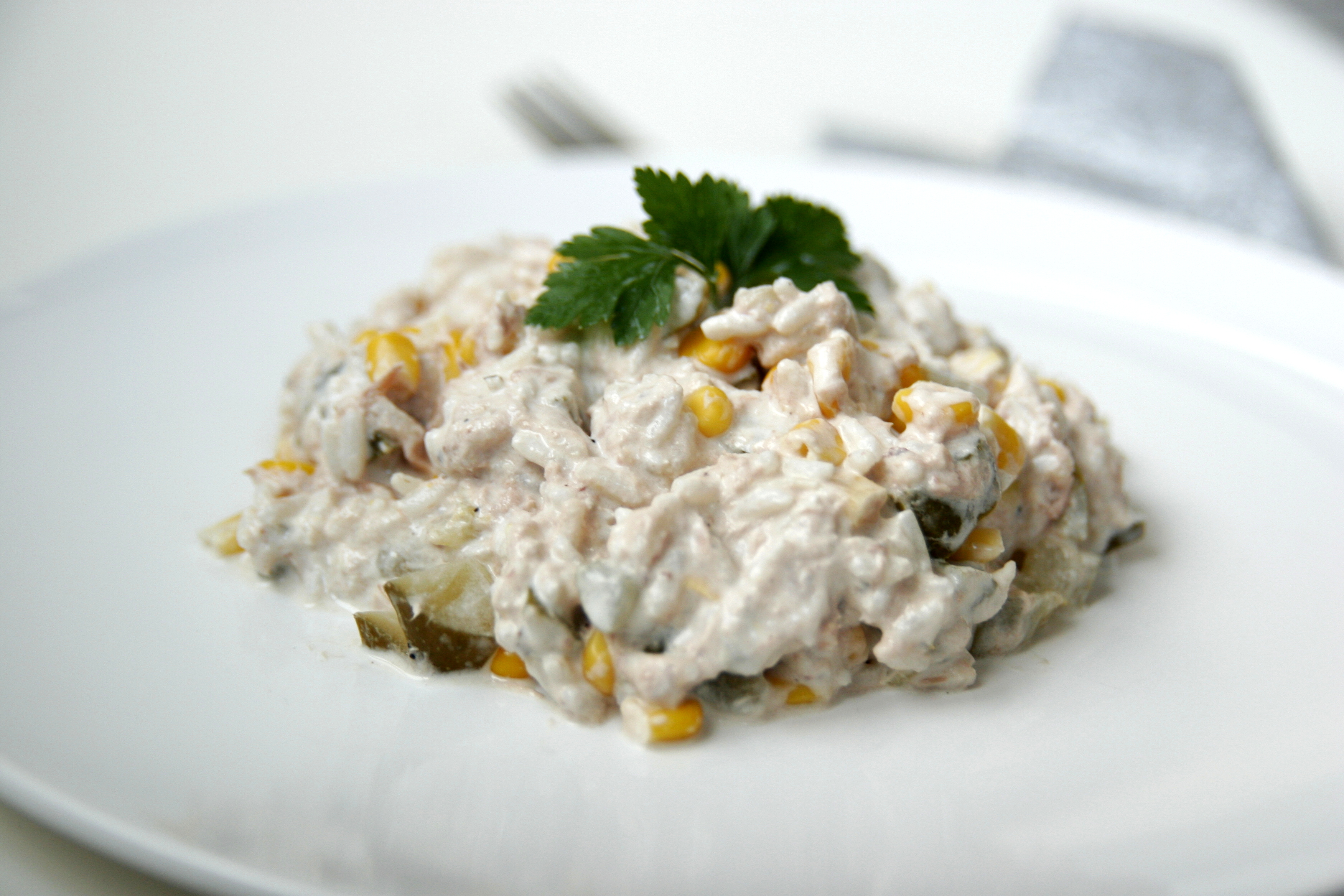 Sałatka z tuńczykiem i ryżem to danie, które od lat robi moja mama. W moim domu zwykło się jeść rybne potrawy przynajmniej raz w tygodniu w piątek. Moja mama bardzo lubi rozpieszczać nas jedzeniem, więc na piątkową kolację lub śniadanko w lodówce czekała sałatka śledziowa lub z tuńczyka, pasta z makreli bądź łososia, albo ryba po grecku. To danie to także świetne danie na wigilijny stół lub imprezkę sylwestrową. Smaczna, prosta i zdecydowanie mało pracochłonna, chociaż jeśli mam być szczera dosyć kaloryczna i syta (może sprawdzić się jako lunch zabrany do pracy lub lekki obiad na zimno). Pamiętajmy jednak, że kluczem do zdrowego odżywiania jest umiar, więc raz na jakiś czas w rozsądnych ilościach sałatka ta nie powinna nam zaszkodzić.