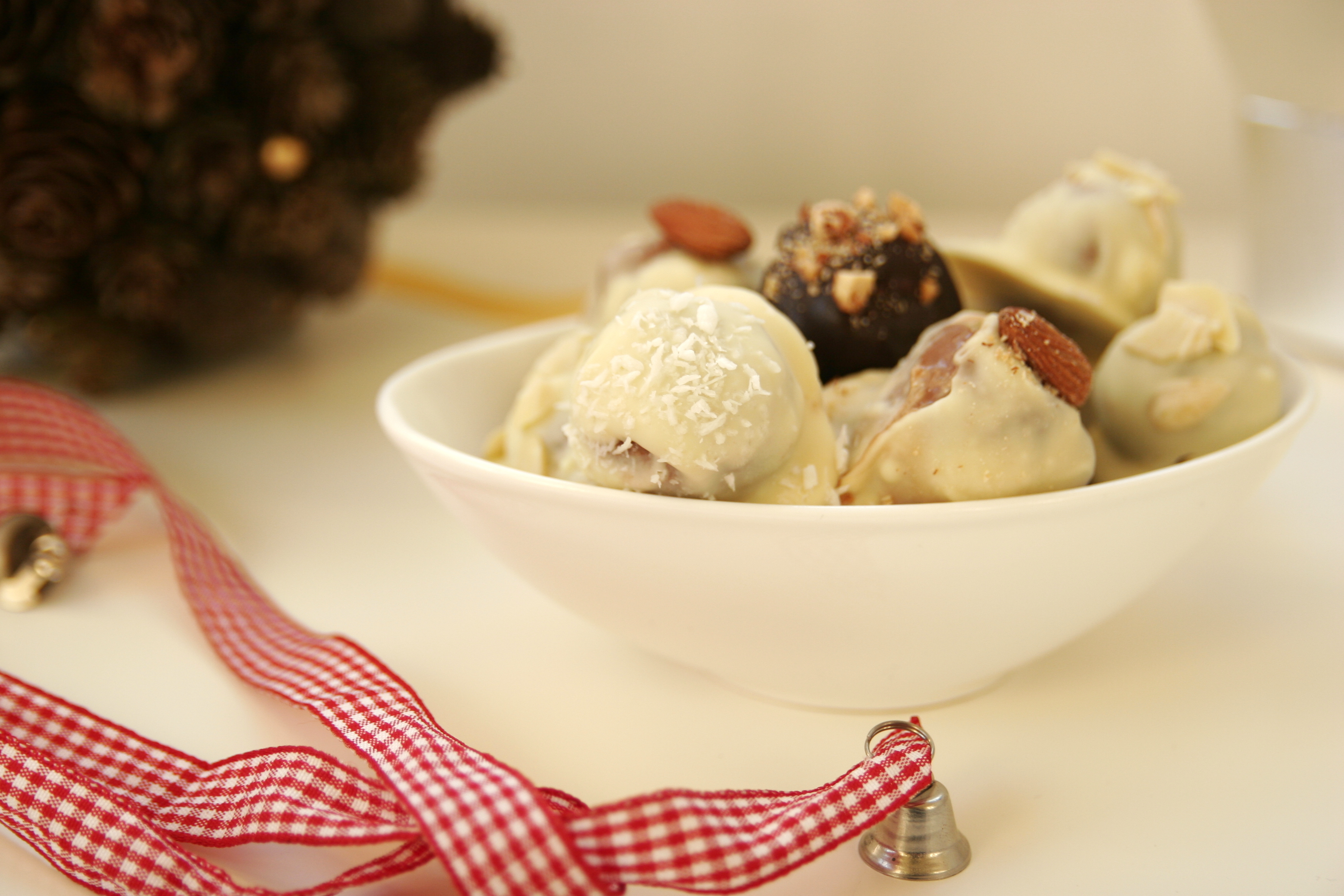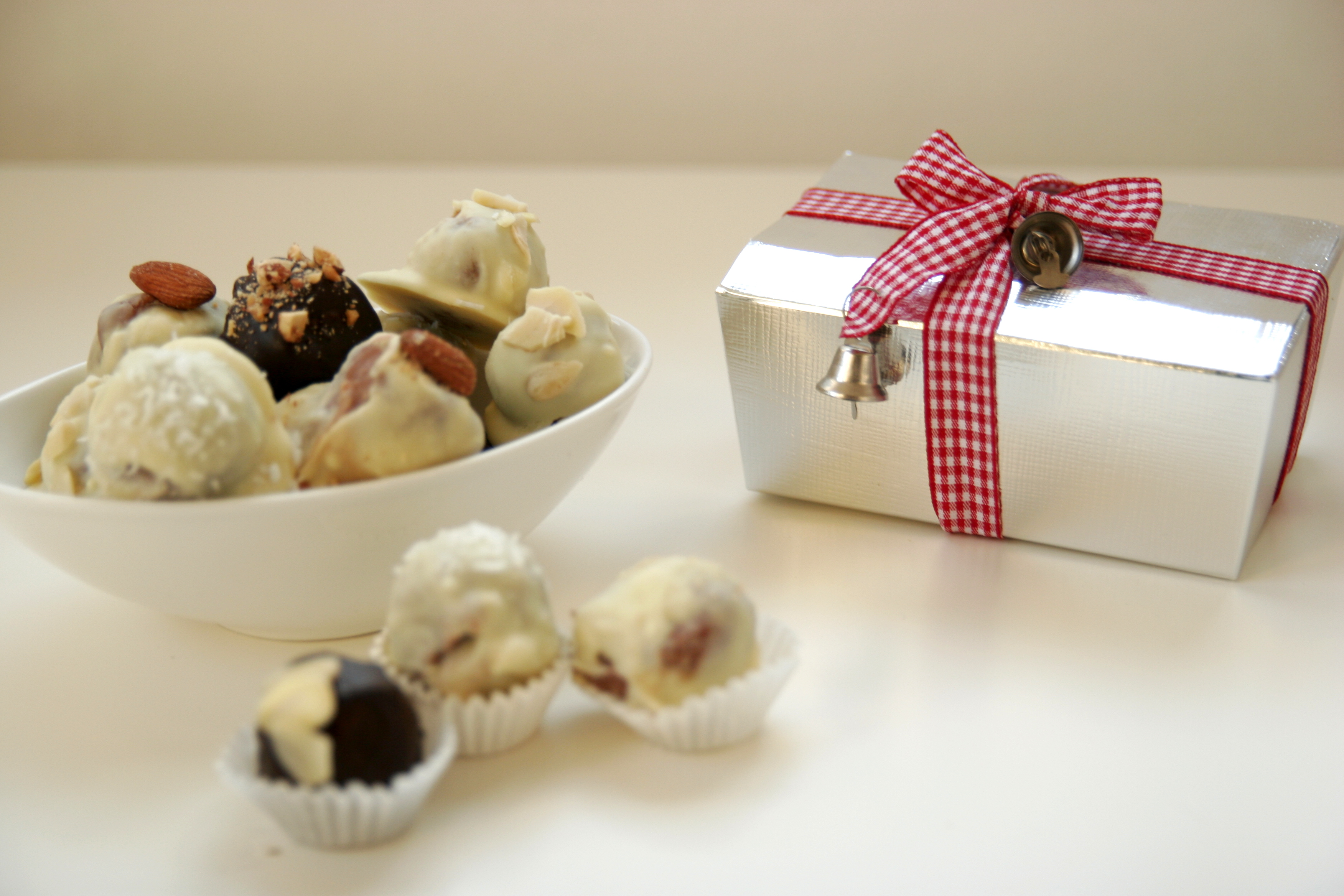 Najlepsze prezenty to te zrobione samodzielnie. Sama takie uwielbiam i jeśli mam okazję staram się robić je moim bliskim. Na Święta Bożego Narodzenia postanowiłam zrobić własnoręcznie zrobione upominki moim rodzicom, którzy obchodzili rocznicę ślubu i teściom. A ponieważ moją specjalnością są słodkości obdarowałam najbliższych domowymi pysznymi pralinkami z czekolady i serka mascarpone. Pewnie nawet nie wiedzą, że przygotowując pierwszą partię z pośpiechu zważyłam mascarpone dodając zbyt ciepłą czekoladę i ratowałam sytuację dodając pokruszone herbatniki. 🙂 Połowę obtoczyłam w czekoladzie gorzkiej (moim zdaniem smaczniejsze i zdrowsze), a połowę w białej. Najważniejsze, że wszystkim smakowały, a wiem to na pewno, bo pierwszy raz widziałam, żeby rodzina rzucała się tak na czekoladki. Zebrałam też zamówienia na wszystkie przyszłe urodziny, imieniny i rocznice ślubu, a sama posmakowałam po jednym z każdego rodzaju w trakcie robienia, bo potem nie było już szans. To chyba najlepsza rekomendacja.