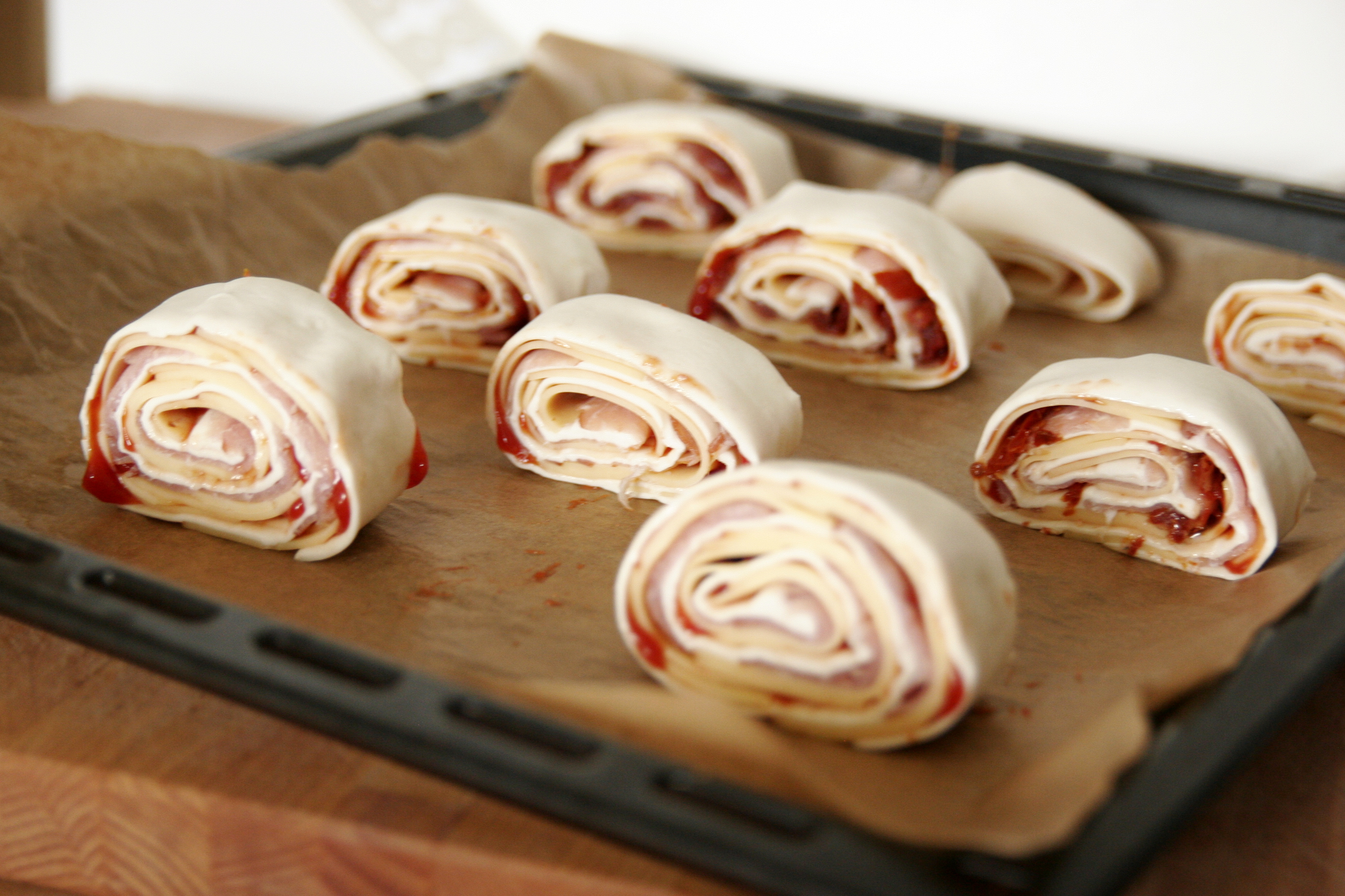 Zdecydowanie jest to danie awaryjne i bardzo dobrze sprawdza się w przypadku potrzeby wyżywienia nieplanowanych (lub planowanych) gości. Jeśli w sylwestrowy poranek nie macie jeszcze pomysłu na szybką imprezową przekąskę to jest to propozycja dla Was. Chociaż w ślimaczkach w oryginalnym przepisie są ser i szynka, tak naprawdę wersji na jego zrobienie jest nieskończenie wiele. Robiłam je już ze szpinakiem i fetą i wyszły równie dobre, albo nawet lepsze. Czasami też dodaję ekstra składniki w postaci pomidorów suszonych pokrojonych w paski lub oliwek, a zamiast zwykłego keczupu używam pomidorowego pesto.