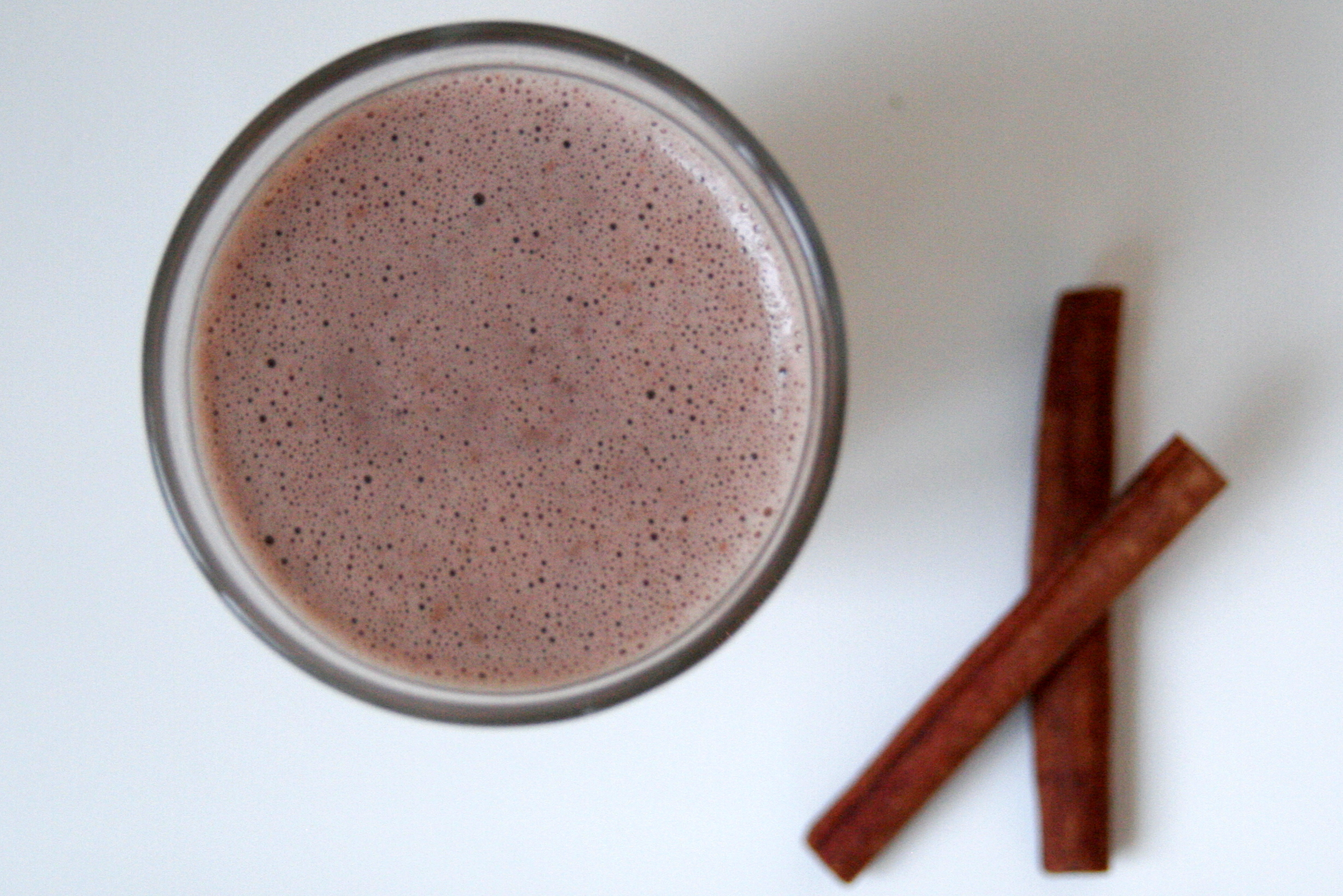 Rozgrzewający koktajl z płatków, tak jak i poprzedni z TEGO wpisu można zacząć przygotowywać dzień wcześniej wieczorem, zaparzając płatki i umieszczając je w lodówce. Rano tylko hop do blendera i koktajl gotowy. Rozgrzewający koktajl z poniższego przepisu lubię pić po delikatnym podgrzaniu. Może napój ten nie zastąpi porannej kawy, ale dzięki rozgrzewającym właściwością cynamonu i pobudzającemu kakao doskonale sprawdzi się jako szybkie śniadanie na mroźne zimowe poranki dla wszystkich zabieganych śniadaniowych niejadków takich jak ja.