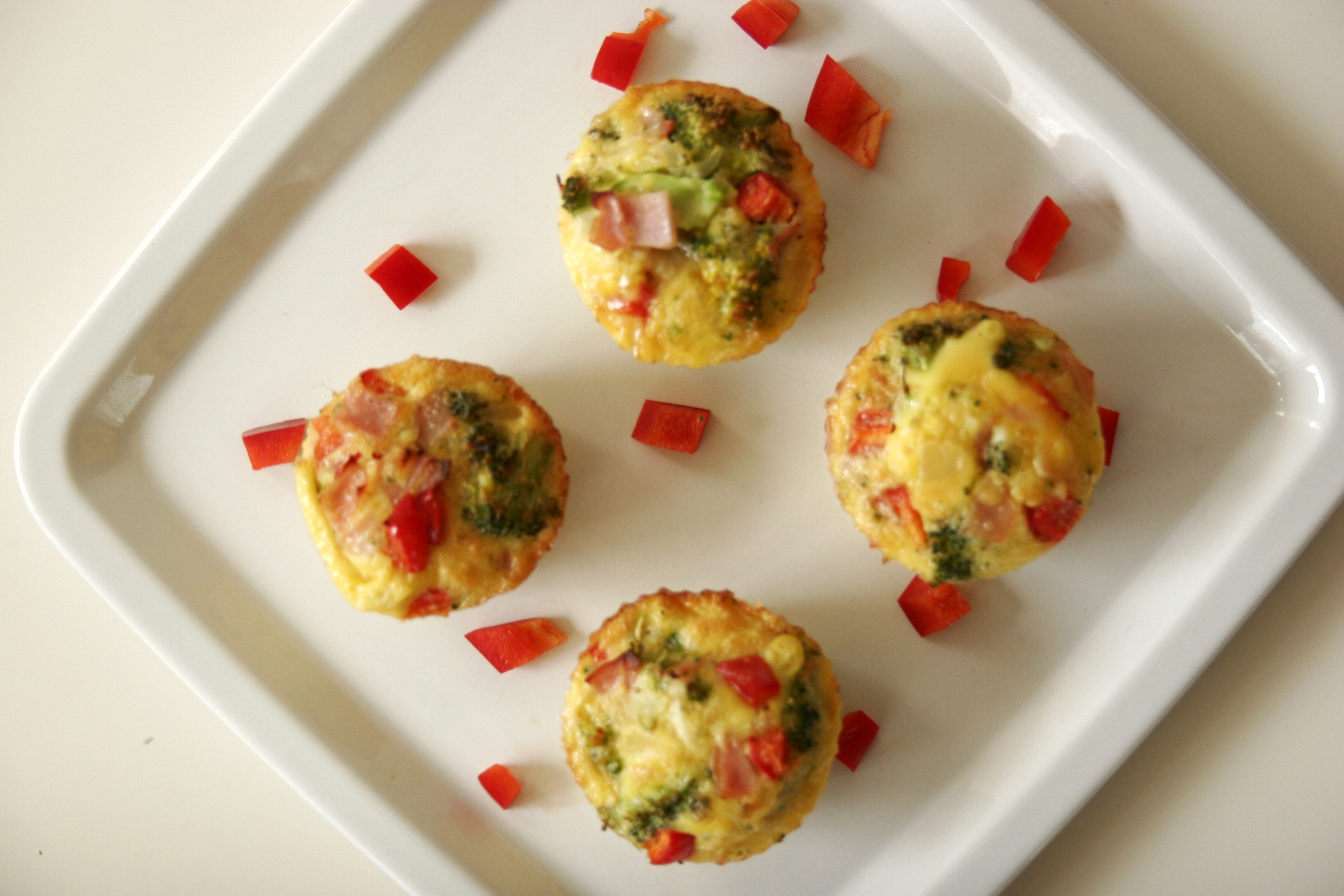 Te wytrawne jajeczne babeczki z warzywami to nic innego jak bardziej wymyślna wersja jajecznicy. W taki sam sposób można również przyrządzić muffinkową wersję omletów. Tym razem jednak postawiłam na jajeczną wersję i była to miłe urozmaicenie menu zarówno dla mnie jak i mojej czterolatki. Do babeczek użyłam tego co miałam w lodówce, a miałam akurat pół brokuła, pół papryki i cebulę pozostałą po kanapkach z kolacji. Lubię jak się nie marnuje, więc z radością wykorzystałam resztki warzyw i przyznam szczerze, że to przypadkowe połączenie smakowało bardzo dobrze. Niby nic, a smaczne i atrakcyjne śniadanie z głowy.
